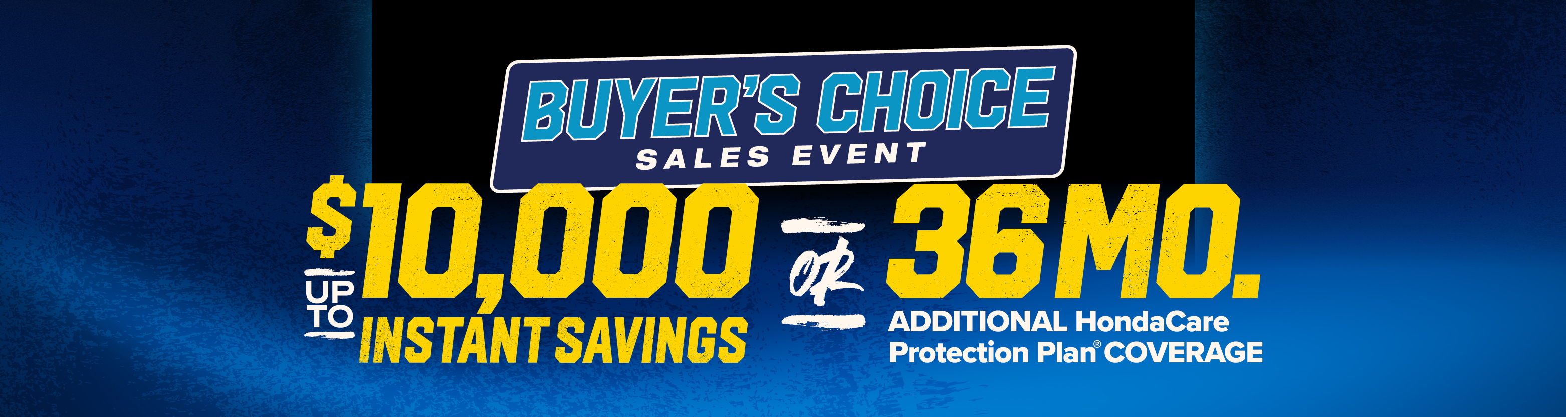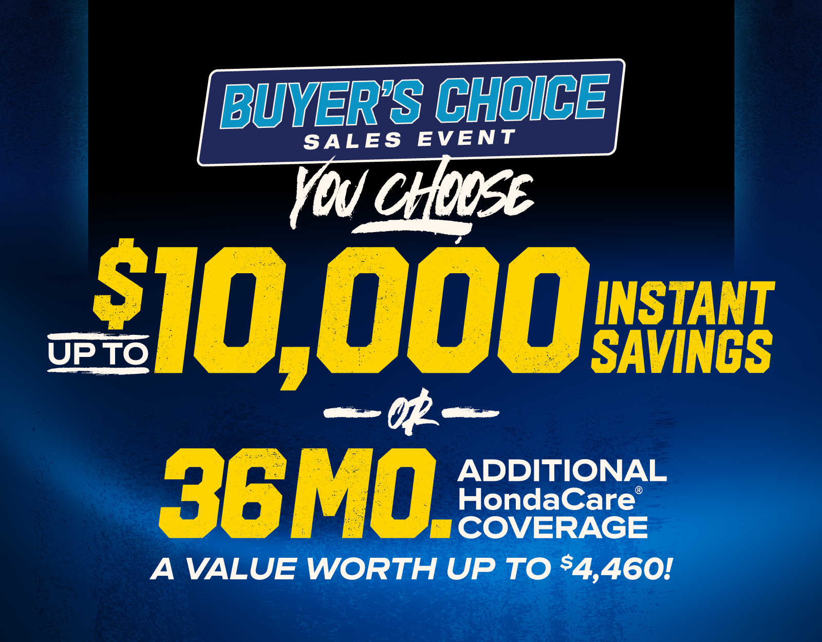 Choose between either up to $10,000 in instant savings, or a 36 month HondaCare Protection Plan® for extra coverage, a value of up to $4,460*! Our biggest offer yet! Only at your participating Honda Marine Dealer.